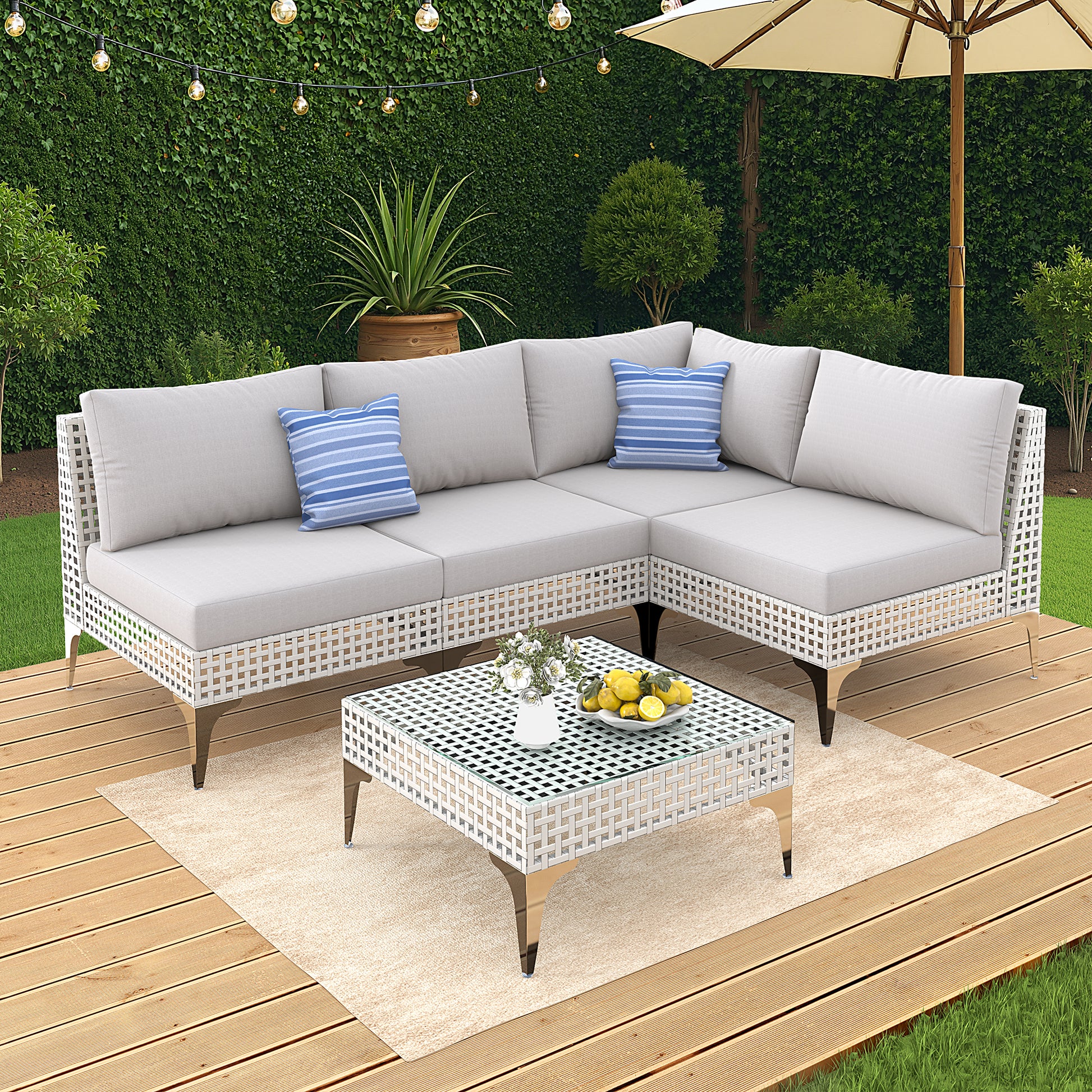 - Stylish & Comfortable Design:This outdoor patio sectional features thick grey cushions and a high-back structure for exceptional comfort, perfect for lounging or entertaining.