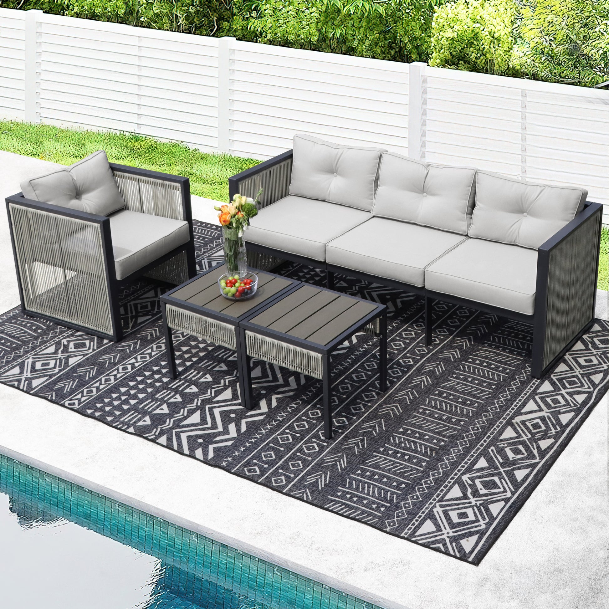 FINCATI Patio Furniture Set Outdoor Round PE Rattan Sofa Set