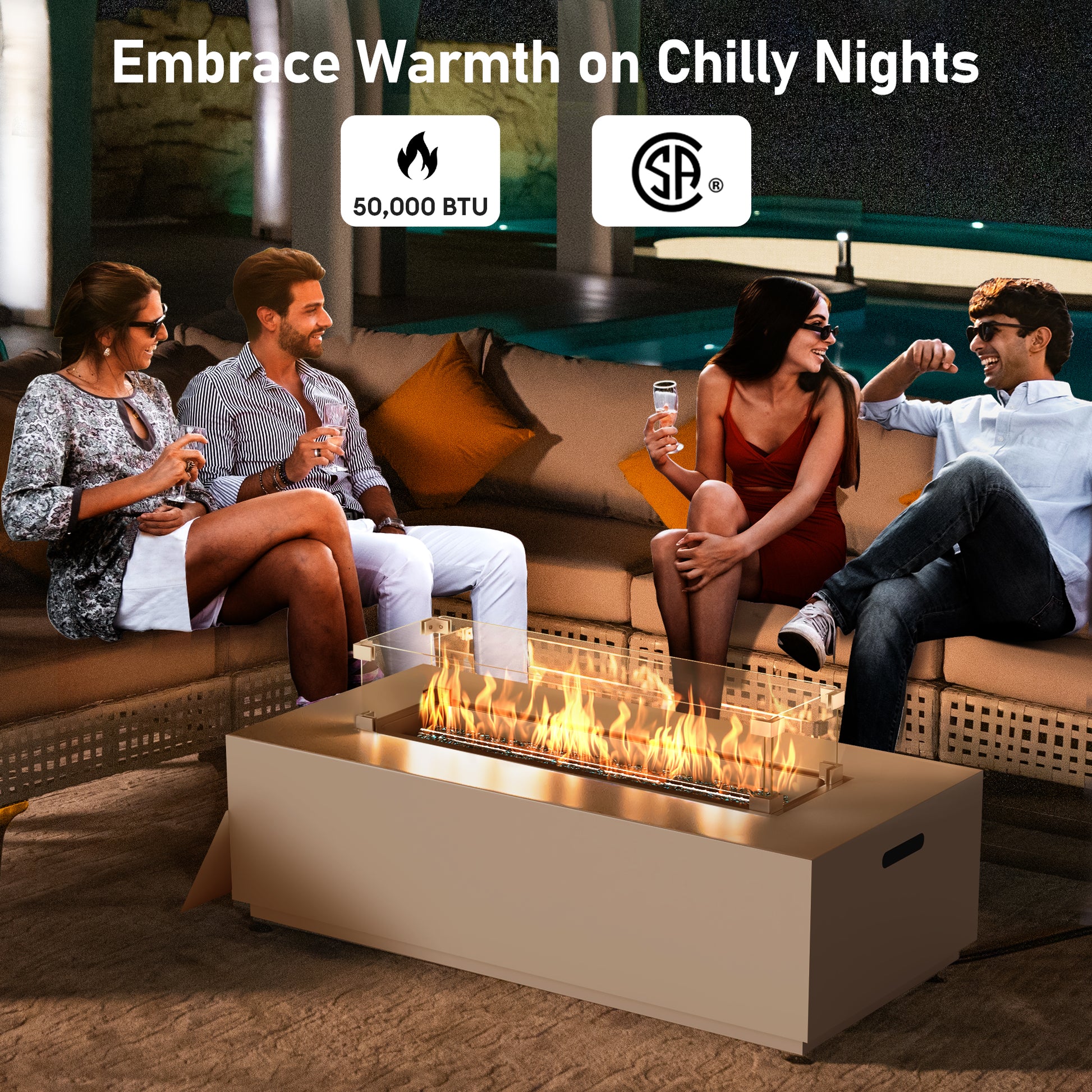 RADIATA 42" Rectangular Fire Pit Table with Tank Table, 50000BTU Patio Fire Pit Table with Rain Cover, Outdoor Natural Gas/Propane Firepit Table