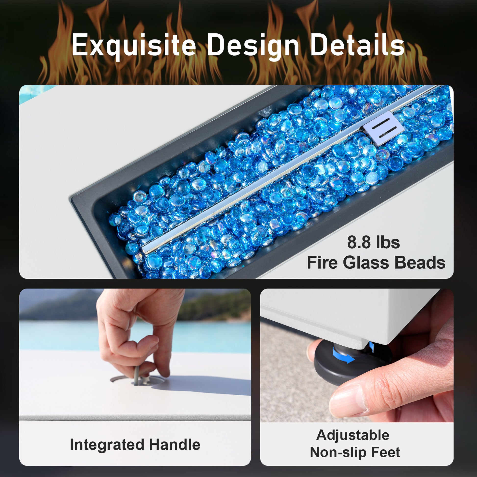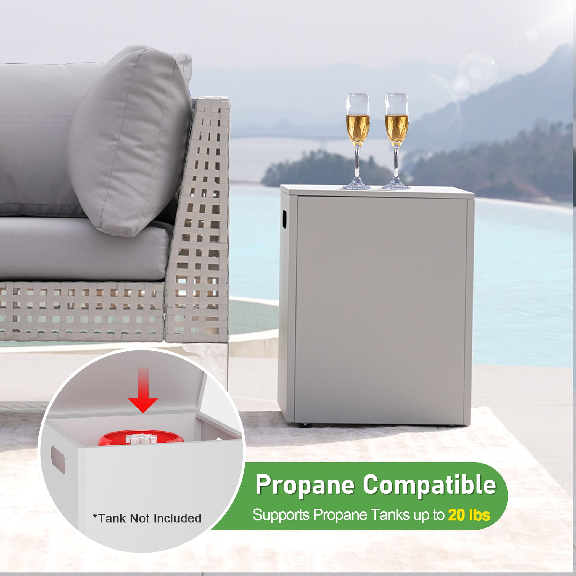 - 2-in-1 Fire Pit & Side Table: This propane fire pit combines a 50,000 BTU outdoor fire pit with a convenient side table, making it ideal for both relaxation and entertaining. Simply shut the included lid to convert it into a patio fire pit or flat surface for drinks and snacks.