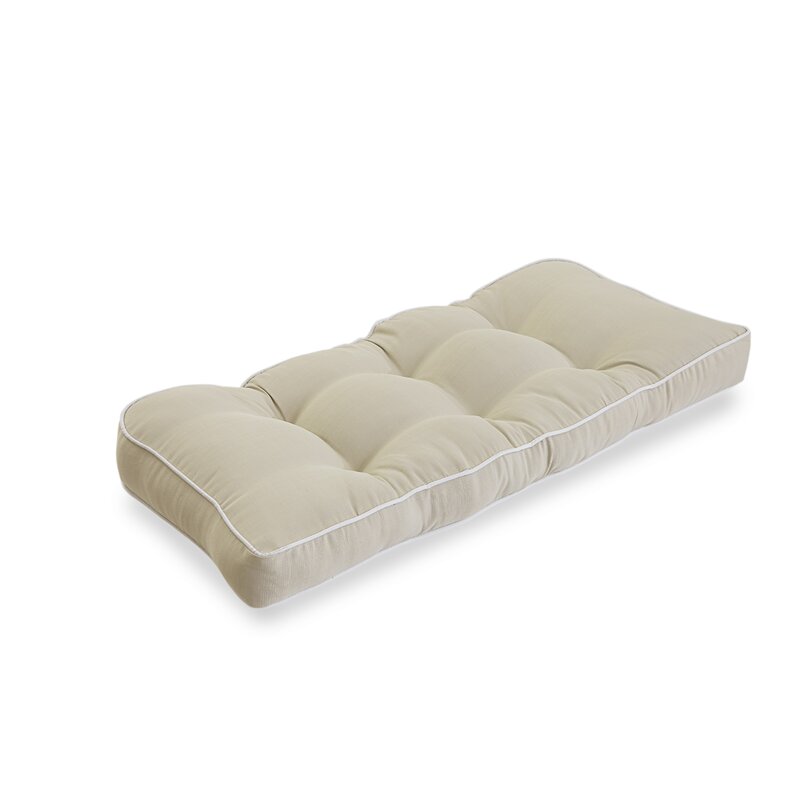 Now that you have your patio furniture, it's time to make it comfortable as well as more colorful: try throwing a cushion on it! Made from weather-, UV- and mildew-resistant polyester fabric, this design is fit for year-round use. Contrasting edged piping and tufted details add visual flair to this essential design, while padding makes for a comfortable seat as you sip cocktails poolside or lounge in the backyard.