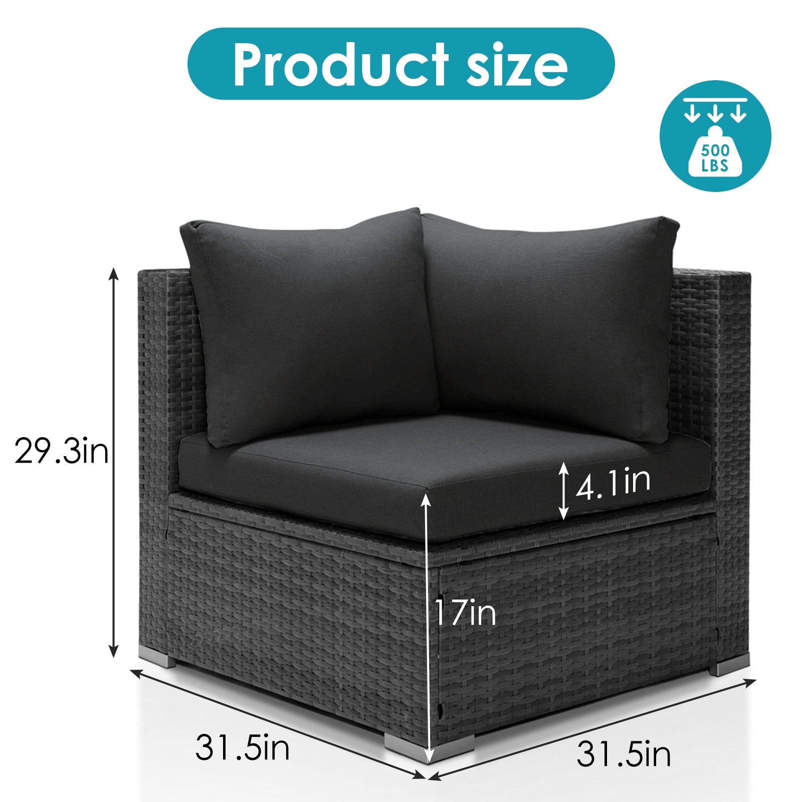 - Premium Materials: It uses heavy-duty iron metal and high-quality, PE wicker material to ensure the sofa's sturdiness and durability. The sofa supports up to 500 pounds