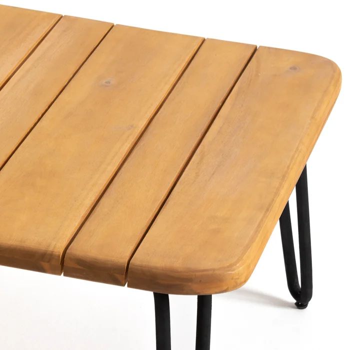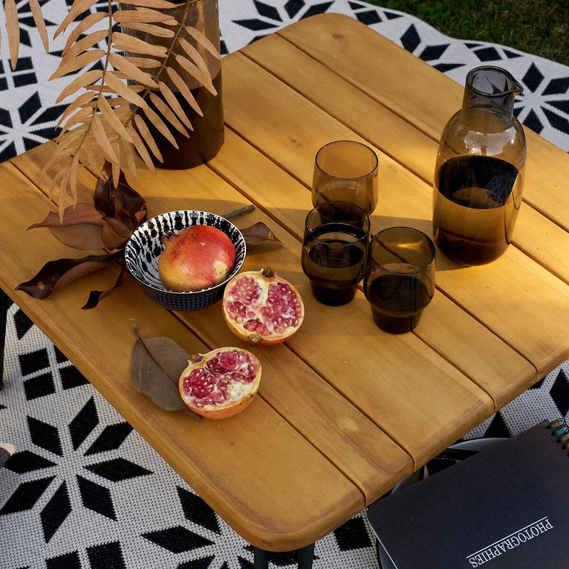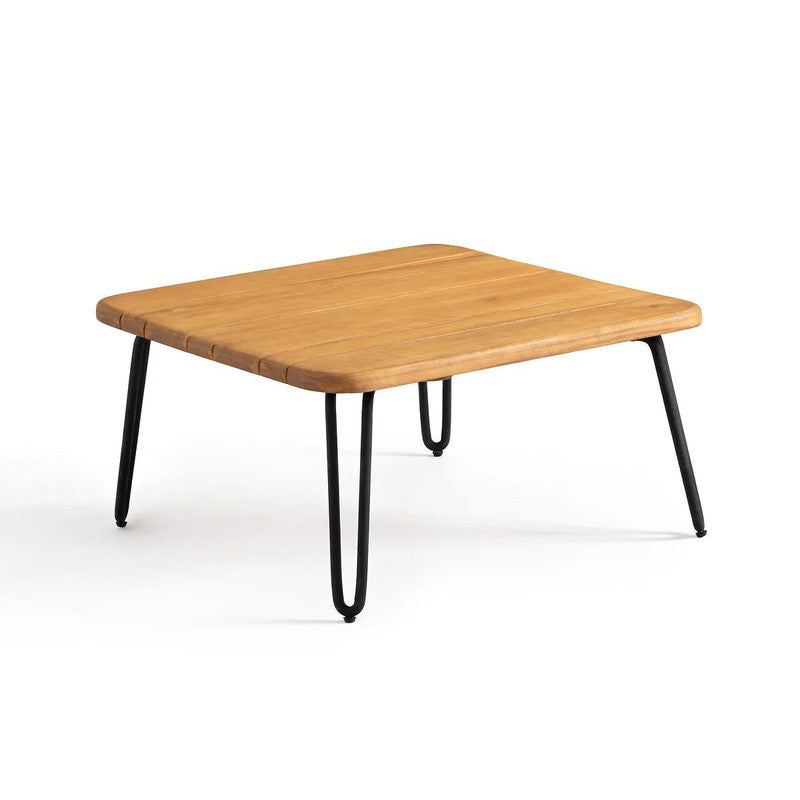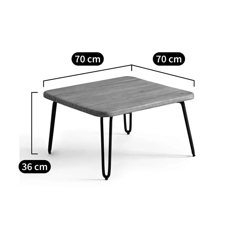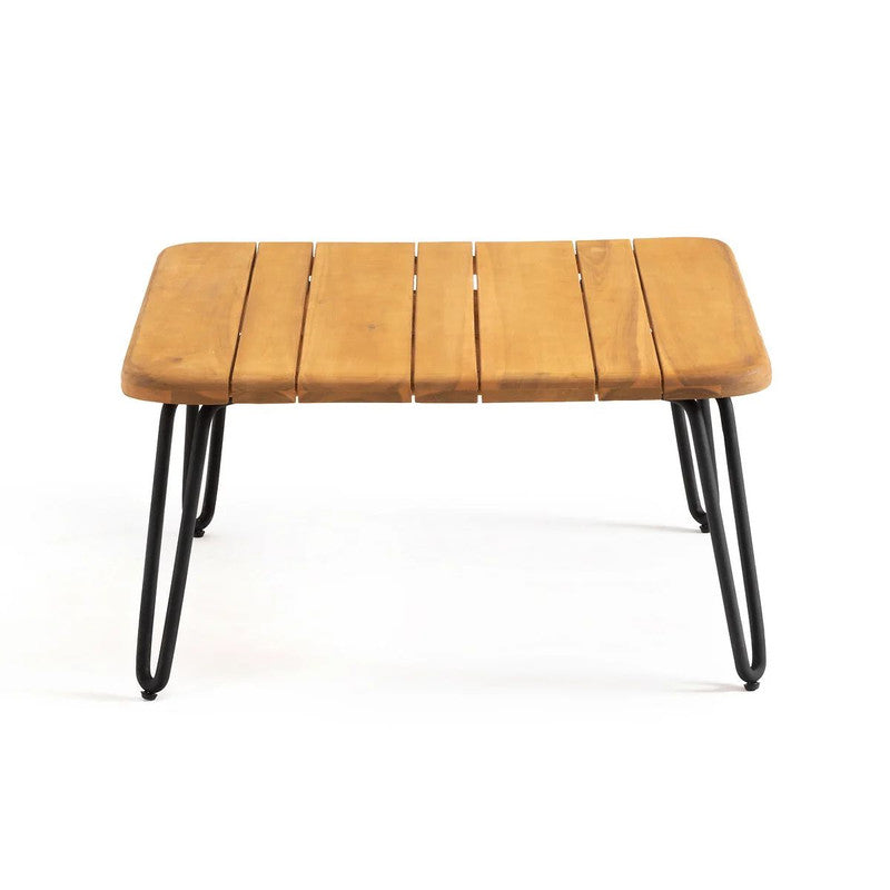 Introducing our outdoor coffee table, the perfect addition to your outdoor seating area. This table features a acacia tabletop that adds a touch of natural elegance, while its metal legs provide stability and durability. The foldable design allows for easy storage and can be leaned against a wall, making it space-saving and versatile. Enjoy a cozy and functional outdoor space with our compact and stylish outdoor coffee table.