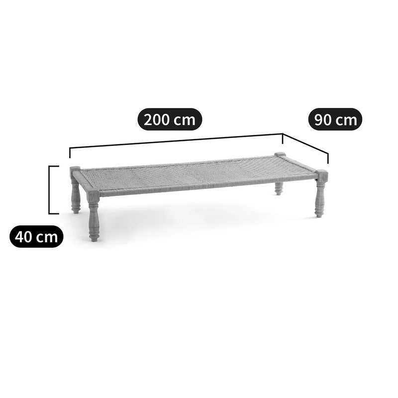 Add a bohemian touch to your interior with the Indian bed/bench. Crafted with a mango wood structure and featuring a hand-braided natural rope seat, this piece exudes rustic charm. With its comfortable and spacious design, it is perfect for moments of relaxation. Embrace the unique style and versatility of the Indian bed/bench, a statement piece that invites you to unwind in comfort.