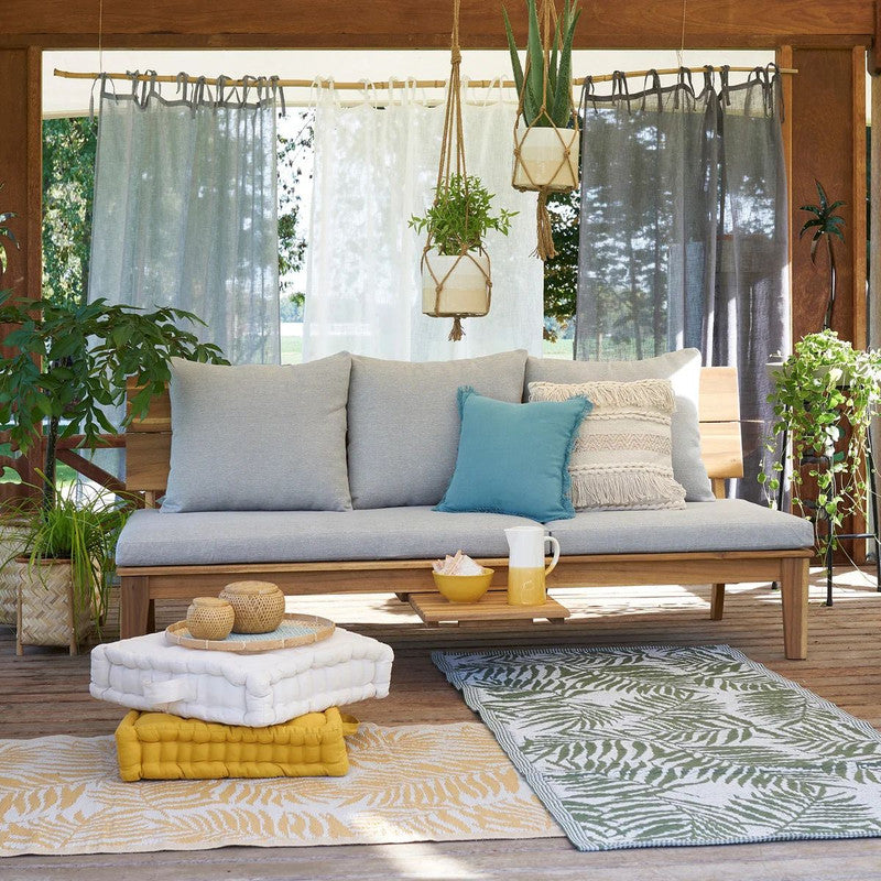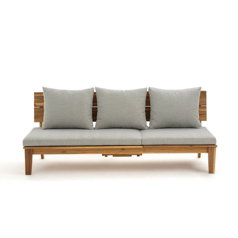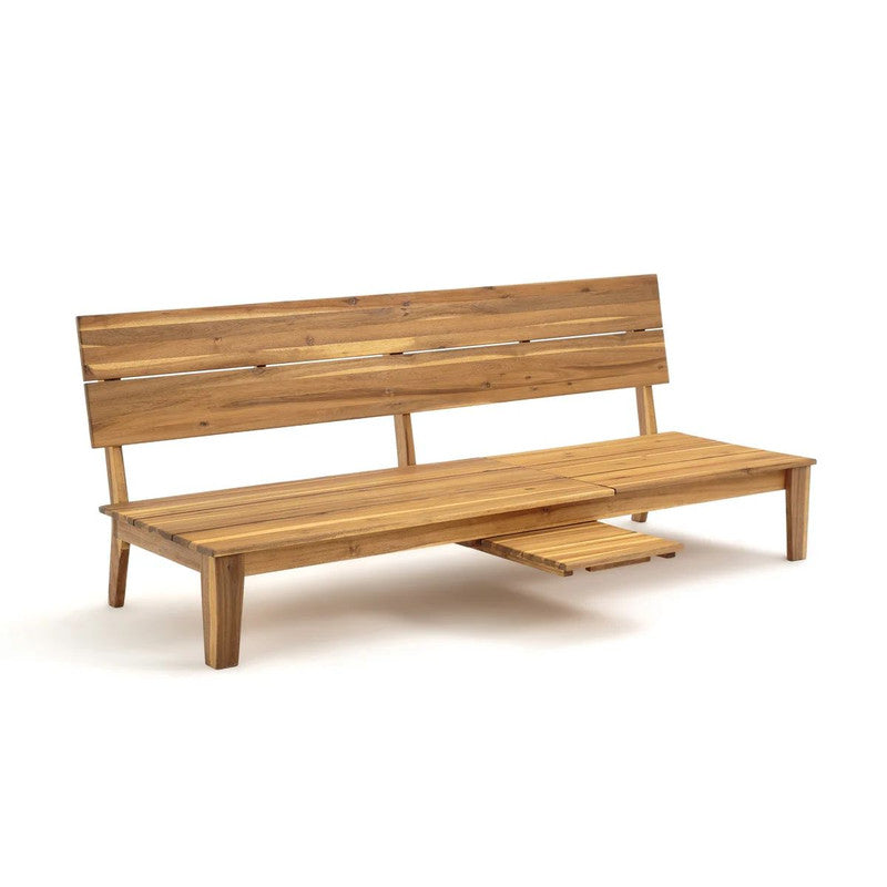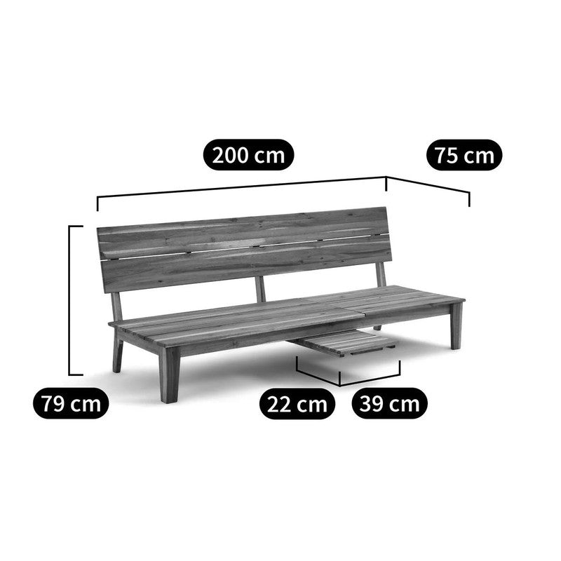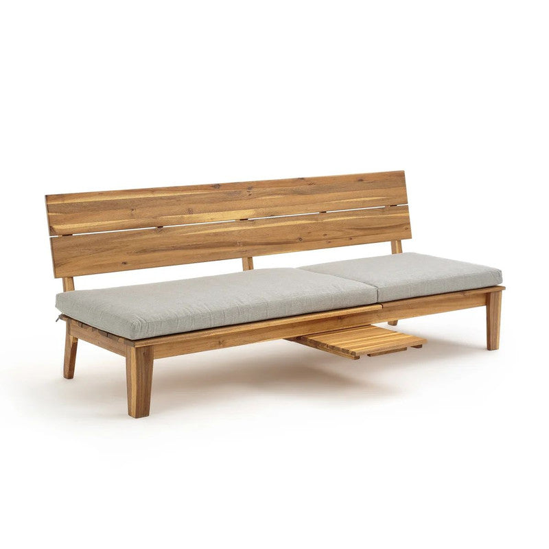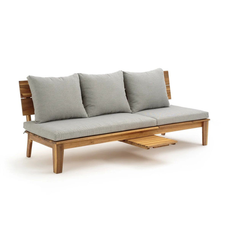 Introducing our outdoor bench with three pillows, the ultimate combination of versatility and comfort. This bench effortlessly transforms into a chaise longue, allowing you to adapt your seating arrangement to suit your relaxation needs. Crafted with durable materials, it is designed to withstand outdoor conditions while providing a cozy and inviting space. With the inclusion of three plush pillows, you can lounge in luxurious comfort and create the perfect outdoor oasis for socializing or unwinding.
