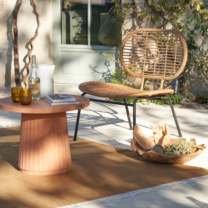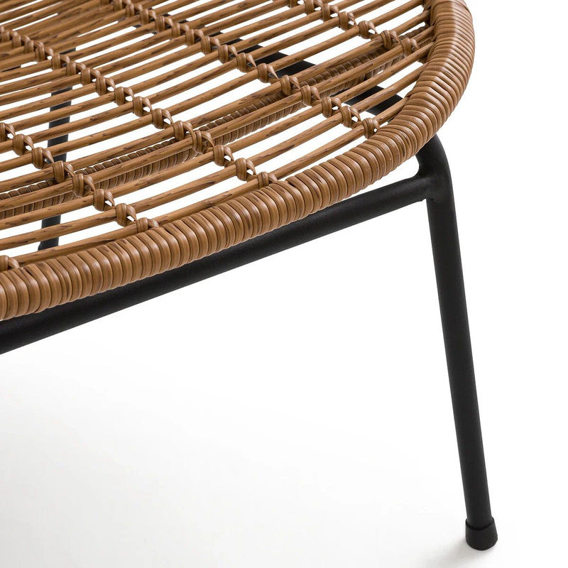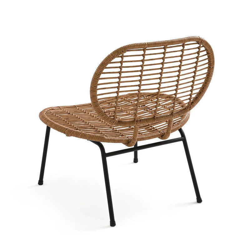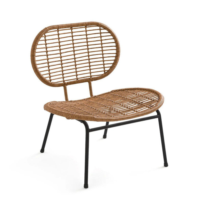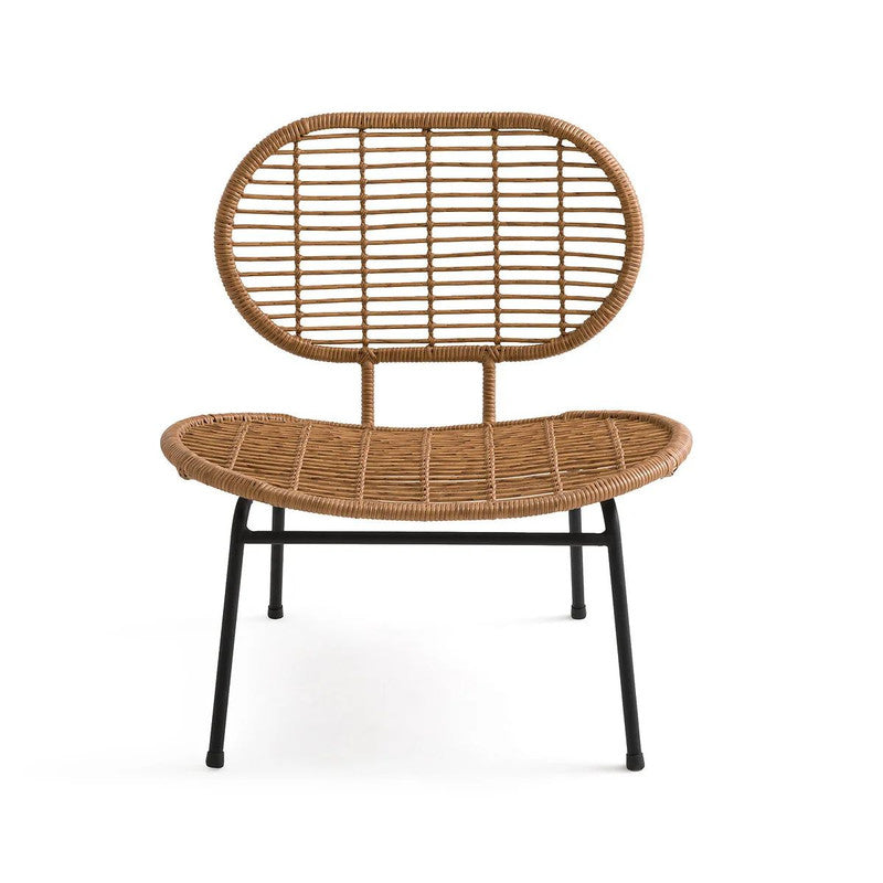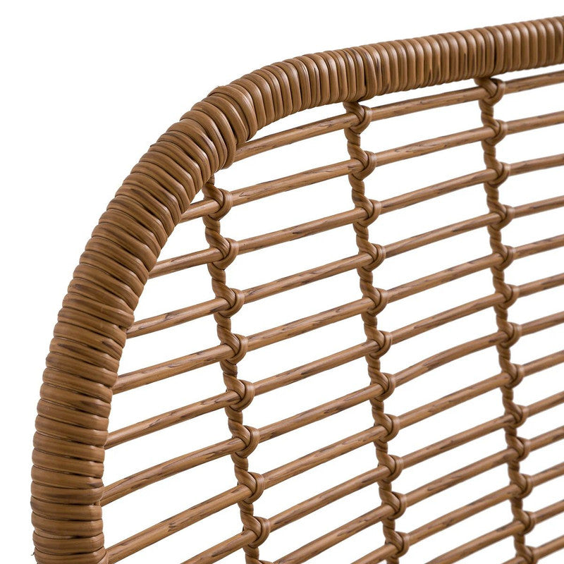 A contemporary design with a generous seat and graphic line. With its woven resin covering imitating rattan, the garden armless chair gives outdoor decor a twist.