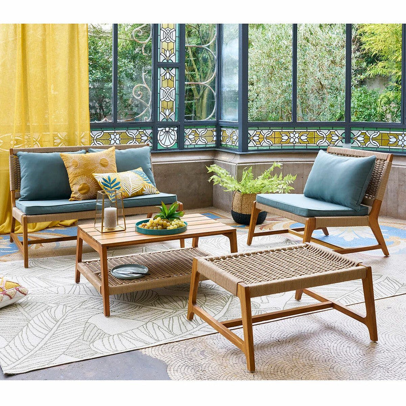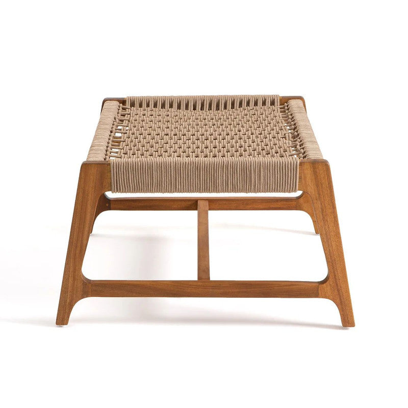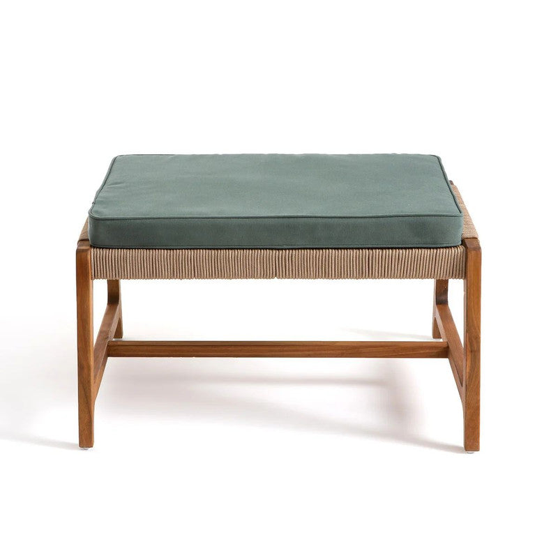 Introducing our outdoor woven bench, a blend of natural aesthetics and superior craftsmanship. With its sturdy wooden frame and exquisite handwoven detailing, this bench offers both durability and beauty. The green linen cushion adds a touch of elegance while providing a comfortable and easy-to-clean seating experience. Enhance your outdoor space with this versatile and charming bench, perfect for lounging and enjoying the great outdoors.