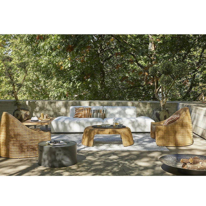 Introducing the outdoor coffee table, a round and stackable piece that is both stylish and environmentally responsible. Made from hand-woven recycled plastic, this table showcases a commitment to sustainability. Pair it with the armchair to create a contemporary and inviting lounge area. Elevate your outdoor space with the outdoor coffee table, a perfect combination of functionality and eco-conscious design.