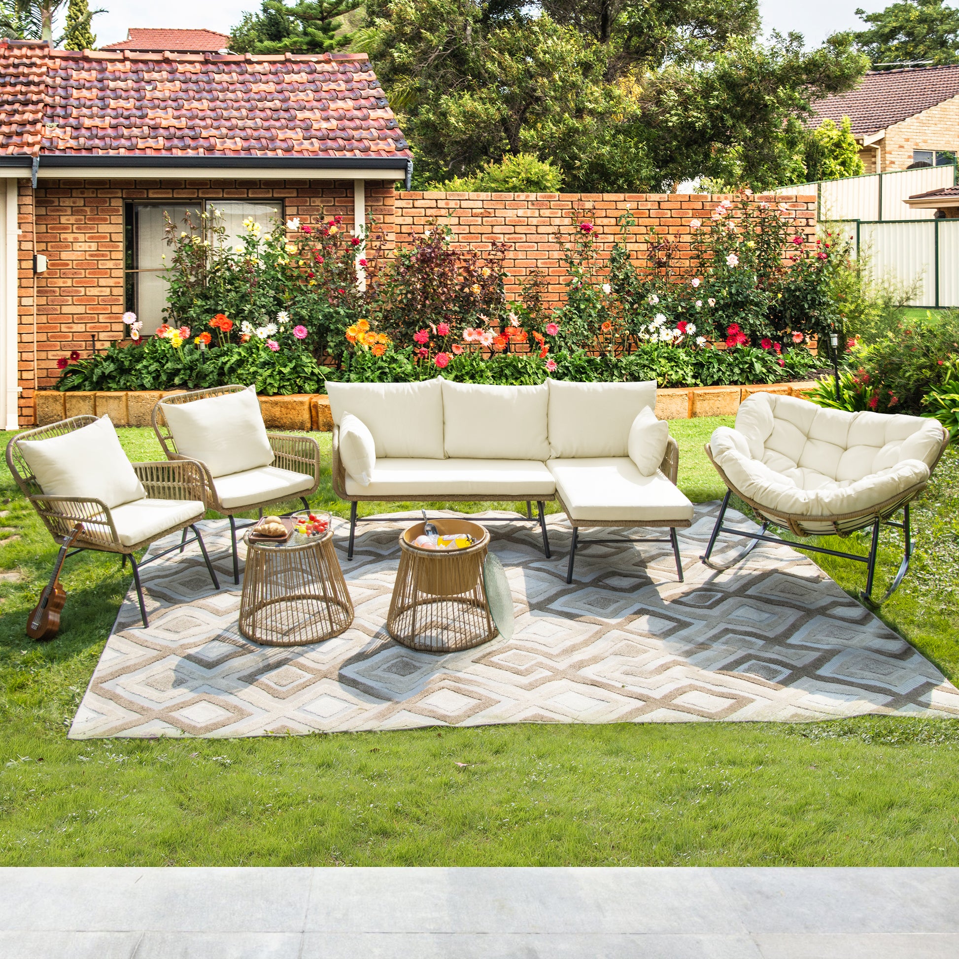 RADIATA Patio Boho Furniture sets Wicker Outdoor Sofa Conversation Set, Natural