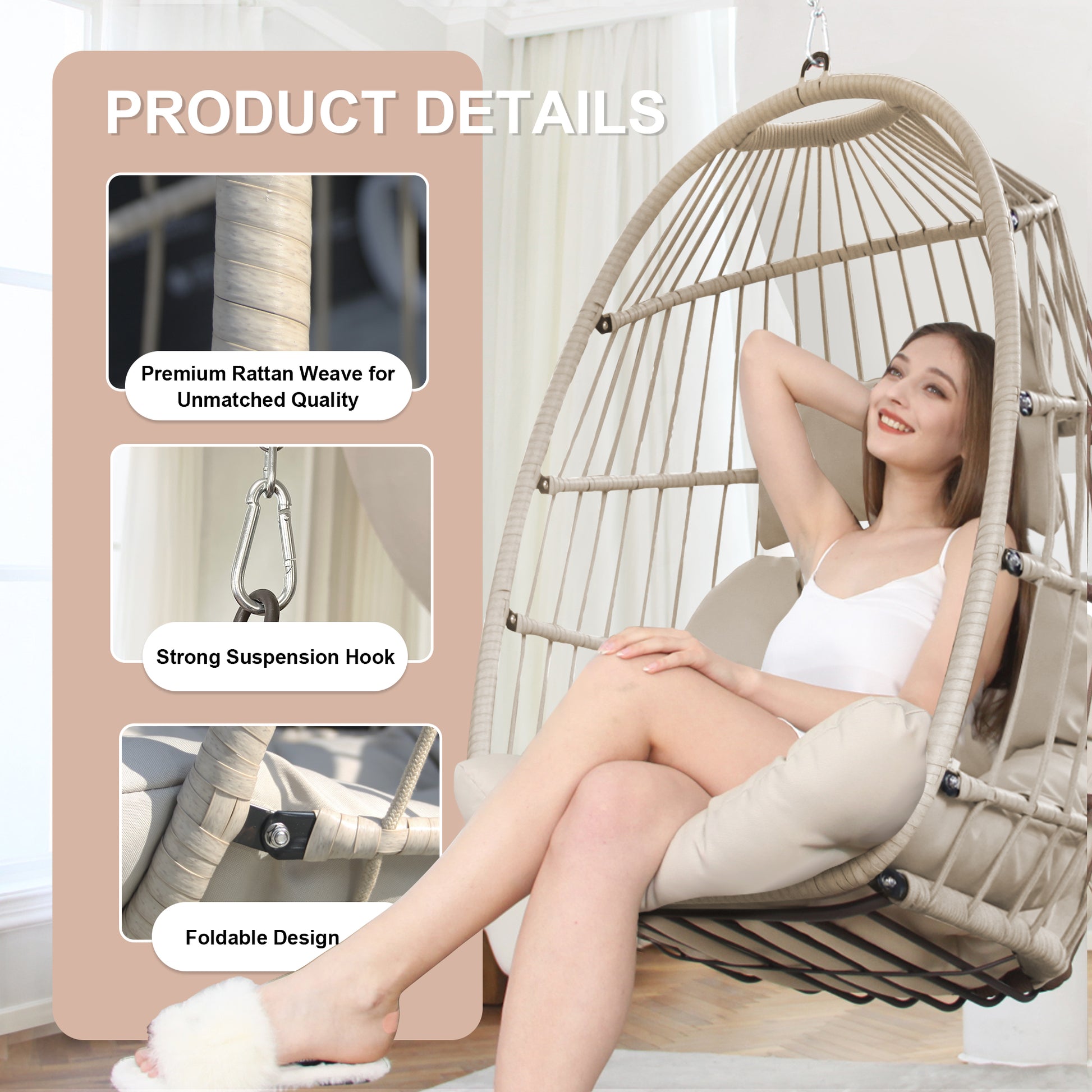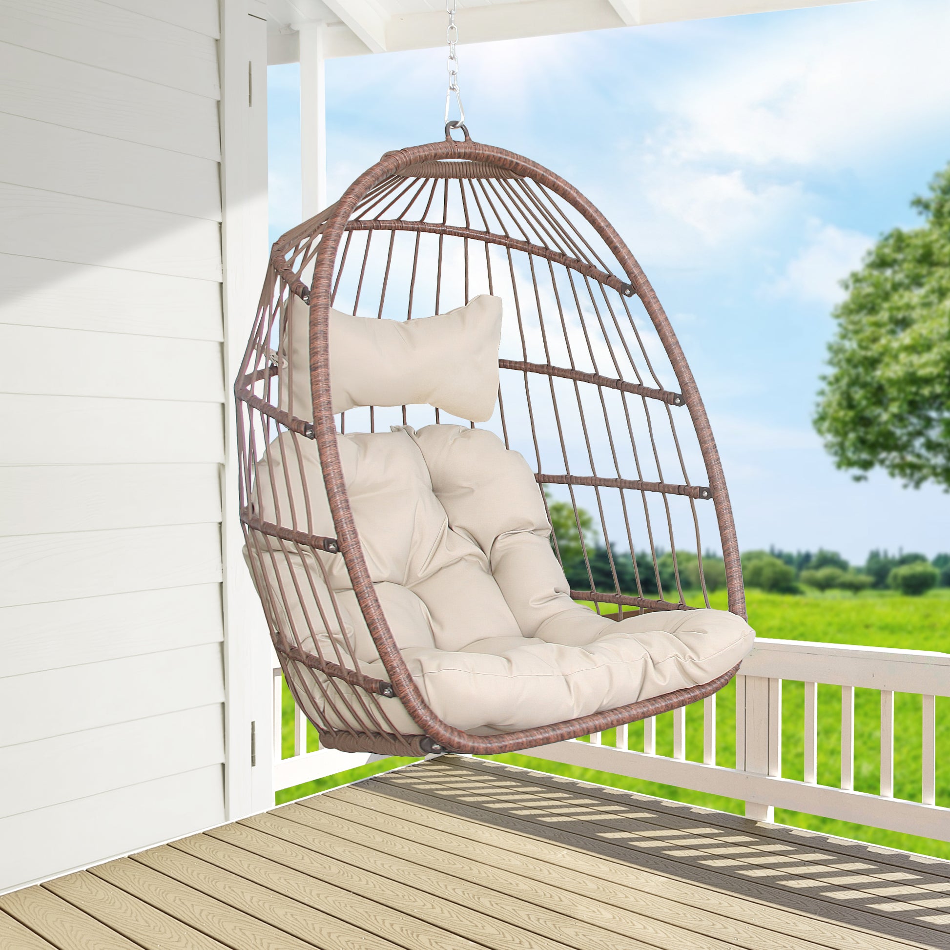 RADIATA Wicker Swing Egg Chair Without Stand Indoor Outdoor Folding Hanging Egg Chair 350 lbs