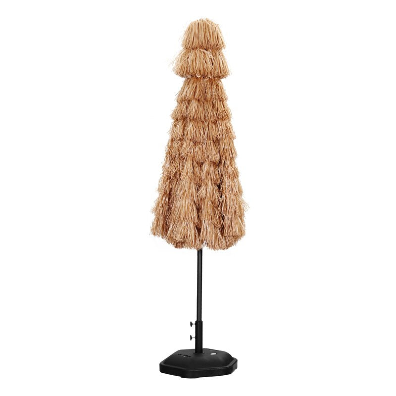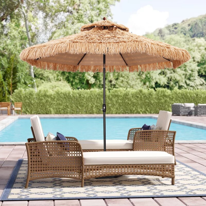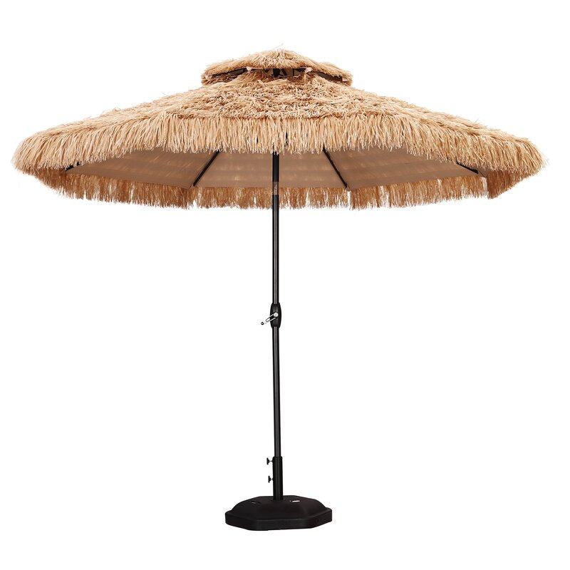 Different from most patio umbrellas, our 10ft patio umbrella has a beautiful thatch appearance with two tier covers. The patio umbrella is equipped with a crank system to open/close the umbrella and a tilting device to block the sun from different angles. The thatch umbrella is suitable for beach, patio, poolside and other outdoor areas.