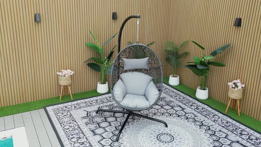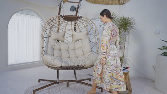 RADIATA Foldable PE Wicker Hanging Egg Chair With Stand Swing Chair With Cushion and Pillow Capacity 350lbs